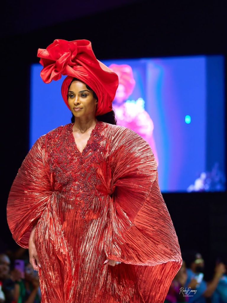 When Ciara Came to LagosOctober 2025 brought a significant moment for Nigerian fashion. Grammy-winning singer Ciara arrived in Lagos for the 15th anniversary of Lagos Fashion Week, and it was more than a celebrity appearance. After discovering through DNA testing that she had ancestral roots in the Benin Republic, her trip became a cultural homecoming.She closed the Fruché show in a fiery red sculptural dress with a perfectly tied gele. The crowd went wild. But perhaps the most telling moment was when she visited Balogun Market and told reporters she was impressed by how much Lagos had grown.